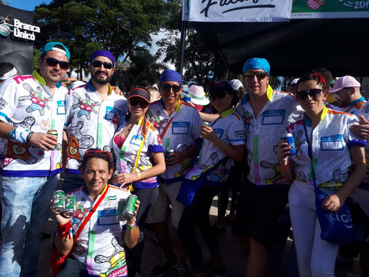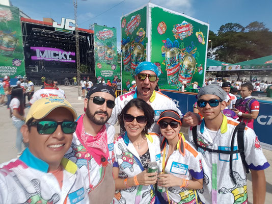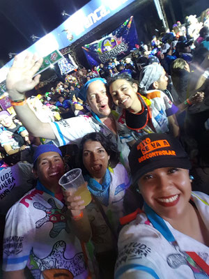 Das Ganze war nicht ganz billig, dafür gab es All-You-Can-Drink-And-Eat sowie diverse lateinamerikanische Stars und Sternchen mit exklusiven Gesangseinlagen auf einem extra abgezäunten Festivalgelände. Begleitet von Miriams Schwester Ceci, ihrem Mann Ale, Miriams Bruder Andres und ihrem Cousin LuisFer sowie diversen anderen Feiergestalten ging es am Sonnabend zunächst zum großen Karnevalsumzug mit Plastikstuhl-Landschaften direkt am Straßenrand. Die Gruppe war vom Veranstalter traditionell mit speziellen Karnevalsoutfits ausgestattet. Dazu gehörte ein wasserdichter Brustbeutel für Handy und Bargeld sowie Kopftücher gegen die heiße Sonne der Subtropen. Doch just als die Karnevalskönigin vorbeidefiliert war, fing es leider wie aus Kübeln an zu schütten, sodass alle Anwesenden fluchtartig das Areal verließen.