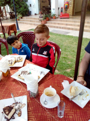 Am Dienstag wurde Daniel dann mal wieder ein Jahr älter. Der Tag begann mit einem Geschenke-Festival im Seemanschen Zuhause. Dann mussten alle zur Schule bzw. sich an die Arbeit machen und die Zeit plätscherte vor sich hin, nur teilweise kurz unterbrochen von Anrufen aus der Heimat. Abends ging es dann ins Restaurant und - schwupps! - war der Tag auch schon vorbei. Am nächsten Morgen flog Daniel nach Sucre. Dort erwartet ihn dann zu seinen Ehren ein riesiger Berg mit in Pommes badenden Hähnchen-Schnitzeln.