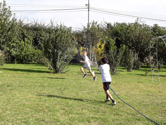 Die Woche fing sportlich an: Leonie und Luka hatten beide zum ersten Mal in ihrem Leben Tennisunterricht an der AISB. Während Luka ganz vom Fußballfieber befallen scheint (bei einem Freundschaftsspiel gegen den FC Tiquipaya schoss er das Golden Goal) und für diese Sportart zunächst kein Interesse zeigte, schien es Leonie von Anfang an zu gefallen - mal sehen, ob diese Begeisterung auch irgendwann in wirkliches Interesse umschlägt.