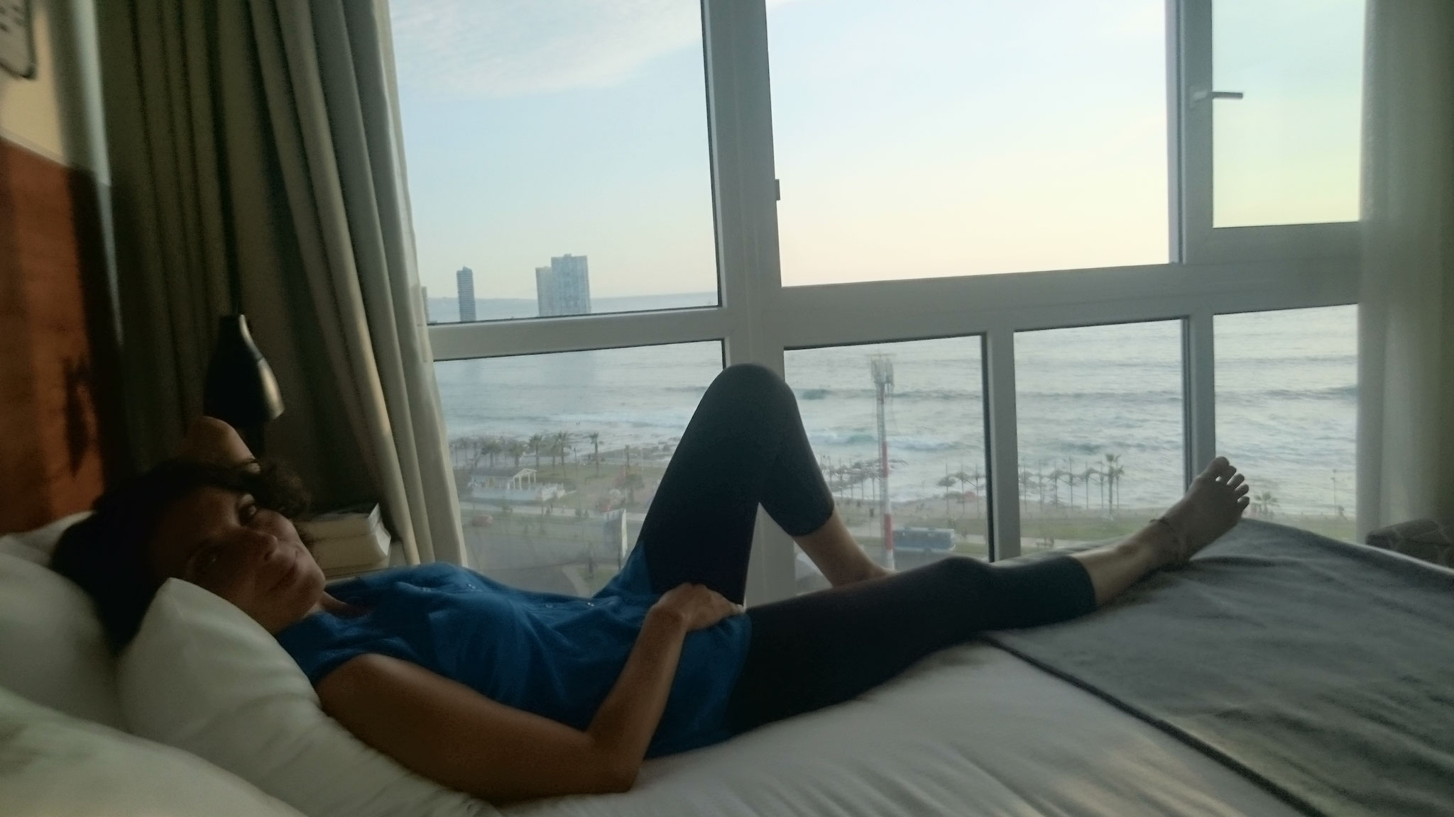 Zwar hatte das Hotel unsere Buchung durcheinander gebracht und wir mussten die ersten beiden Nächte in einem kleineren Zimmer verbringen. Doch als uns am nächsten Morgen dann angeboten wurde, auf der Dachterrasse im 23. Stock mit Blick über die Stadt, den Strand und den Ozean als Kompensation für das Zimmerchaos die gesamte Woche gratis zu frühstücken, war das Urlaubsglück komplett an einem der entspanntesten Surfer-Hotspots der Welt.