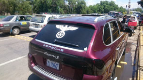 Bei einer Fahrt neulich mit dem Auto durch Cochabamba traute Daniel seinen Augen nicht: Plötzlich scherte ein Porsche Cayenne in die Spur vor ihm ein, auf der Rückscheibe einen großen Reichsadler mit einem fetten Hakenkreuz darunter. An beiden Seiten des SUVs waren außerdem Deutschland-Flaggen aufgeklebt. Das gibt’s bestimmt nicht mal in Sachsen ...