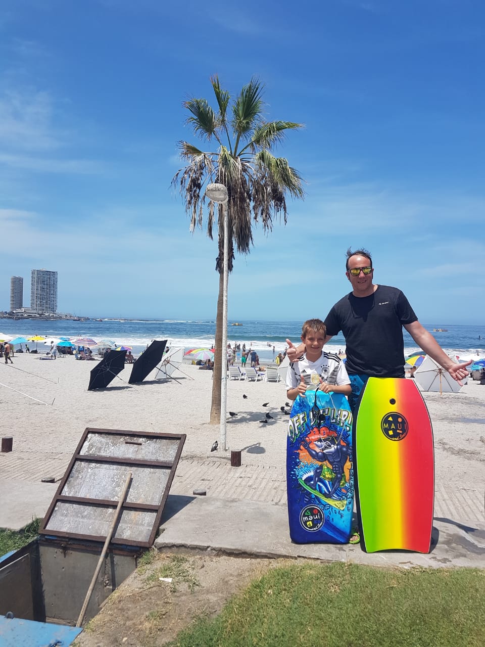 Endlich wieder am Meer. Es tat einfach gut, nach langer Zeit die salzige Luft zu riechen und zu schmecken, den Wind in den Haaren zu spüren und das Kreischen der Möwen zu hören. Iquique, eine Hafenstadt im Norden von Chile mit rund 200.000 Einwohnern, empfing uns ab dem ersten Moment mit offenen Armen. Angefangen bei der freundlichen Dame vom Ticketcounter am Busbahnhof, die uns bei unserer Ankunft davon abriet, in der Dunkelheit das Terminal zu verlassen und uns kurzerhand mit ihrem Smartphone ein Uber-Taxi bestellte. Oder die freundlichen Menschen, die uns zweimal spontan Geld schenkten, als wir ohne einen Penny in der Tasche auf der Suche nach einem Geldautomaten waren. Bis hin zu der Henna-Tattoo-Frau, die Daniel mindestens fünf Mal einen Anker auf den Arm pinselte, weil er diesen wiederholt unbedachterweise in sein T-Shirt geschmiert hatte.